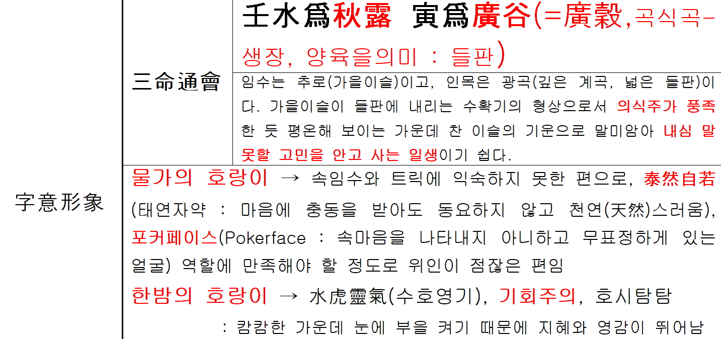 1. 임인일주 성격(낭월스님 / 이동헌 인컨설팅 유튜브 + 책 참고)